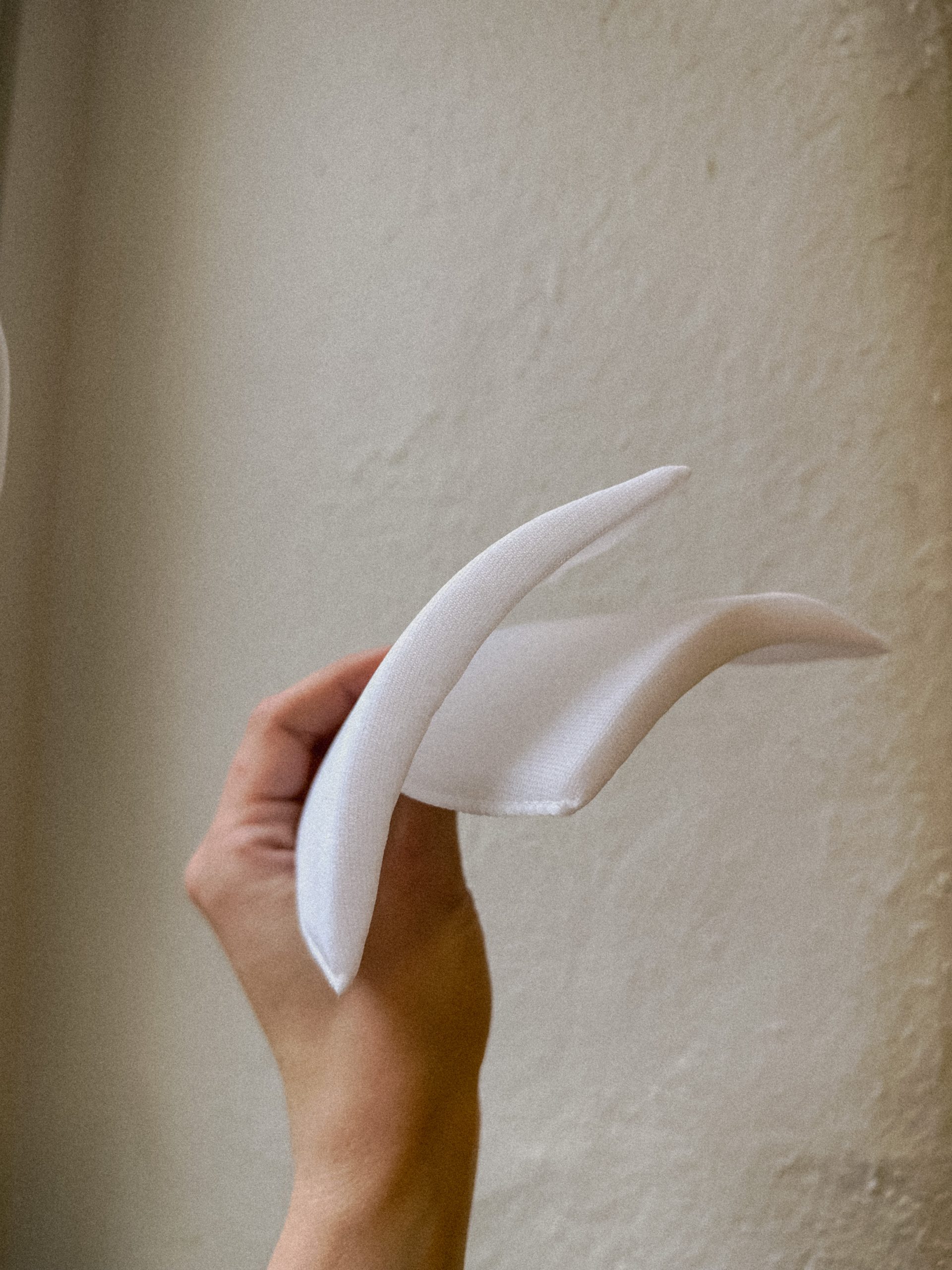 Keskikokoiset pehmeät olkatoppaukset kahden kappaleen eli yhden olkatoppausparin paketissa. Nämä toppaukset sopivat monen eri yläosan olalle tuomaan ryhtiä.