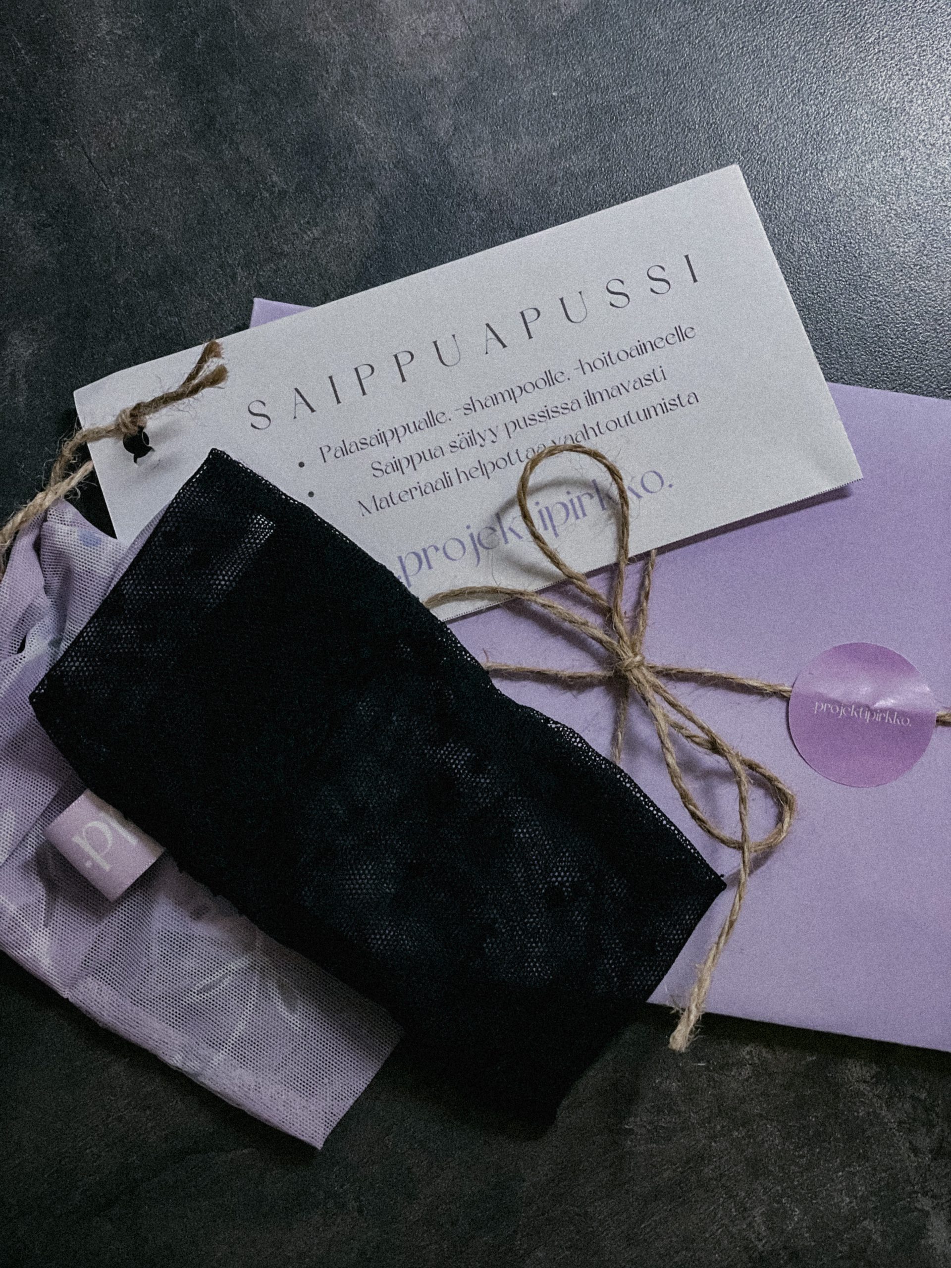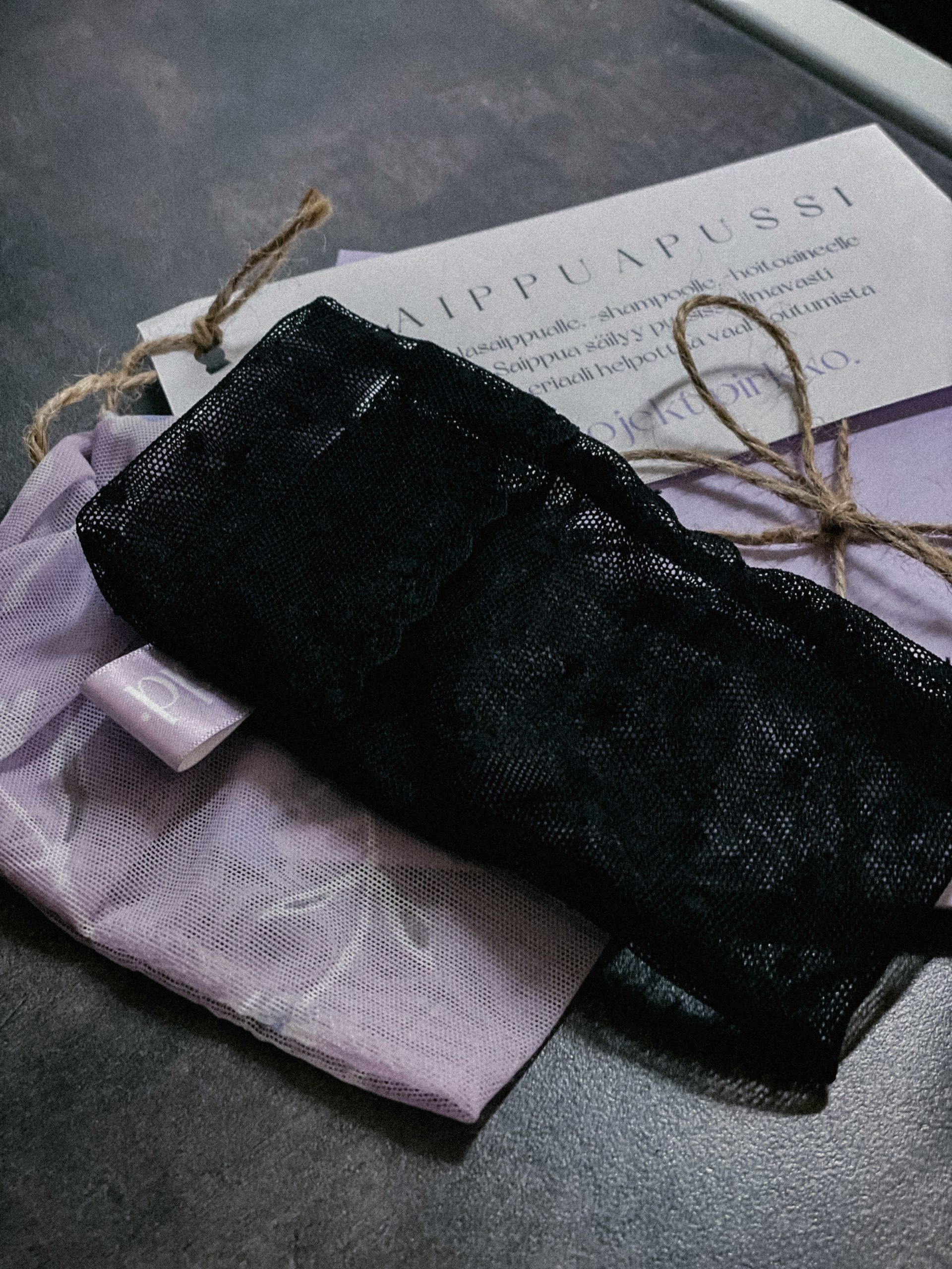 Saippuapussi palasaippuan ja -shampoon säilytykseen: Saippuapussin ompeluohje tulossa!